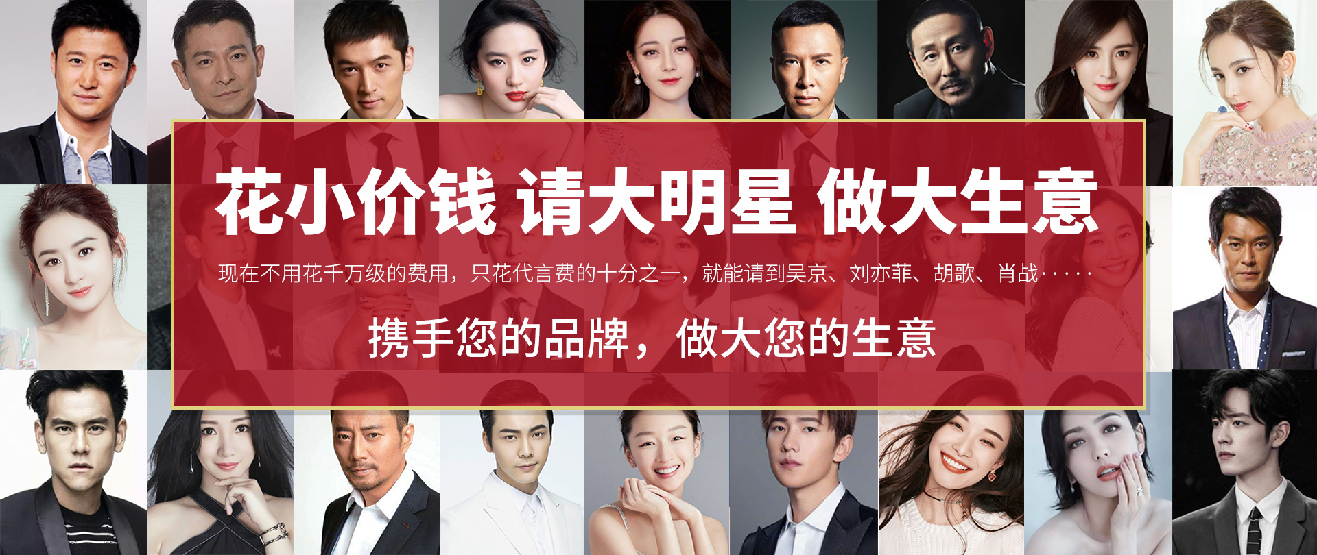 花小價錢、請大明星、做大生意;超高性價比的類似代言模式; 超一線明星助力品牌形象升級;